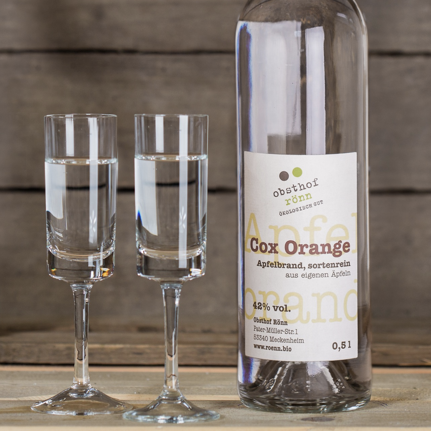 0,5 l sehr feiner Brand, hergestellt aus unseren eigenen Cox Orange-Äpfeln, bei einer Brennerei direkt bei uns im Dorf. Die Äpfel durften dafür extra lange reifen, dass sich auch der volle Apfelgeschmack im Brand wieder findet.