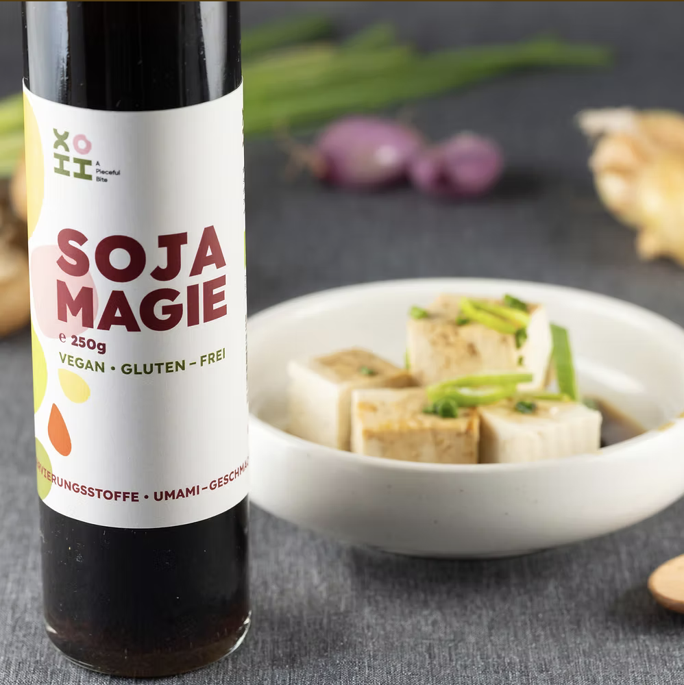 Dafür haben wir jetzt eine Lösung: Sojamagie-Sauce! Salzig, aber nicht zu intensiv, süß, damit die gerichte Kontur bekommen und mit einem Schuß Sesam für den speziellen asiatischen Geschmack.