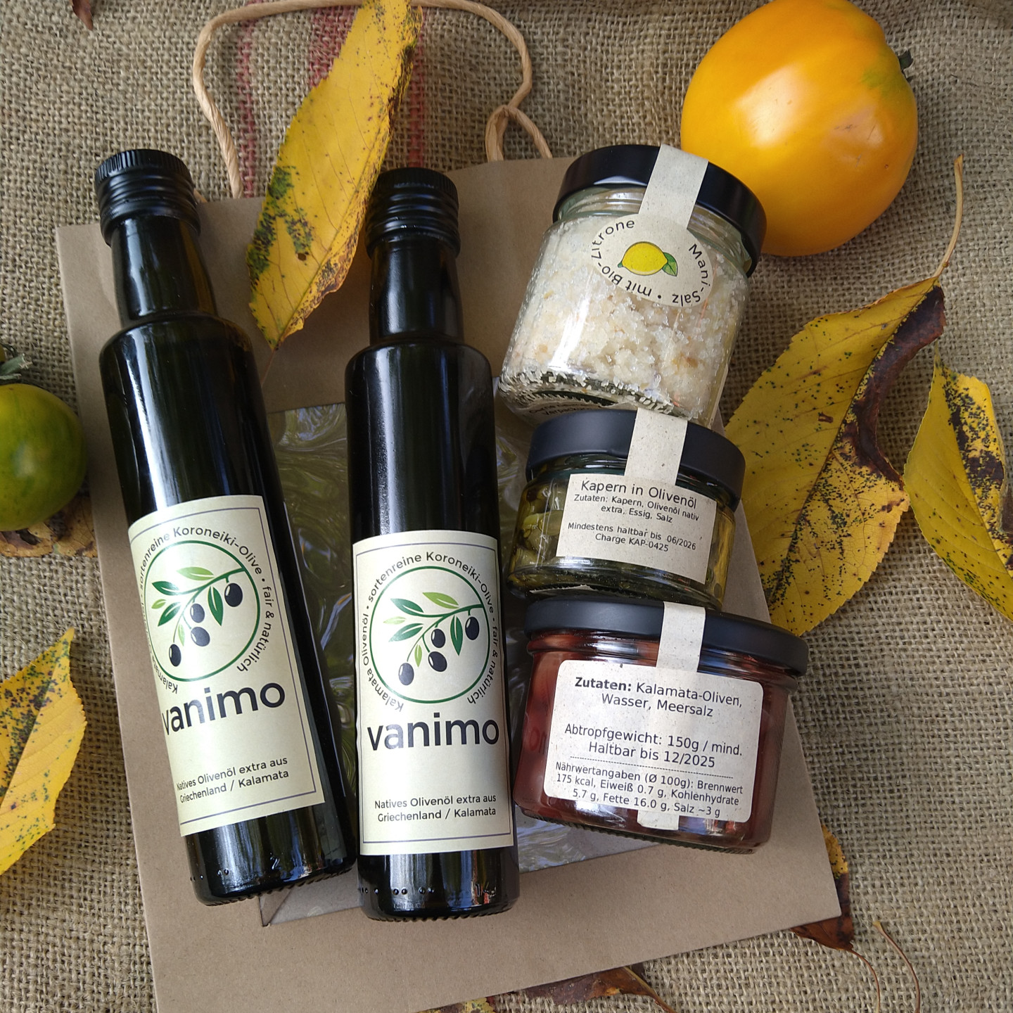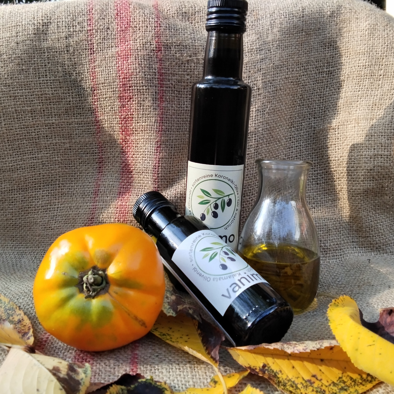 Natives Olivenöl extra aus Griechenland / Kalamata, erste Güteklasse - direkt aus Oliven ausschließlich mit mechanischem Verfahren gewonnen. Kühl und dunkel lagern Erntedatum 11/2024 / erste Kaltpressung. Hersteller: vanimo, Till Adams