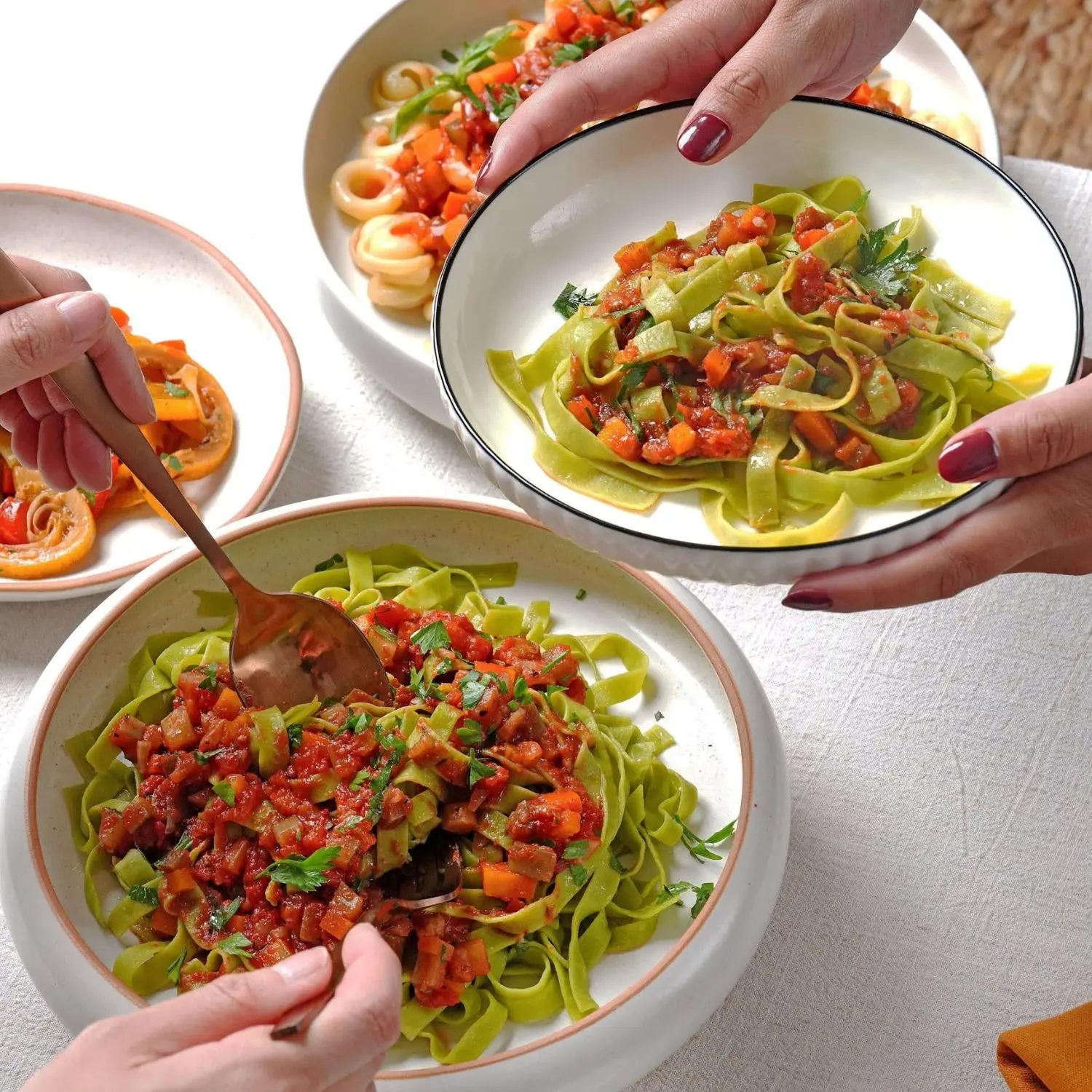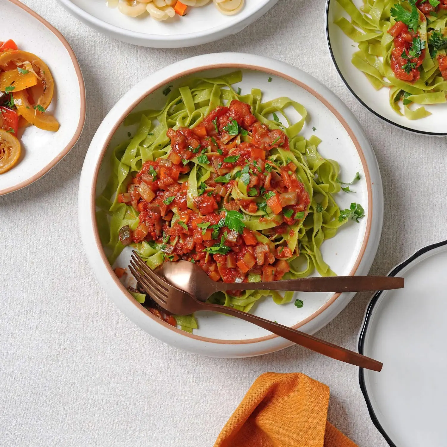 Unsere Interpretation der traditionellen Bolognese. Mit den besten Lebensmitteln zubereitet und sanft geschmort. So kommen die frischen Kräuter am besten zur Geltung und das Gemüse bleibt knackig.