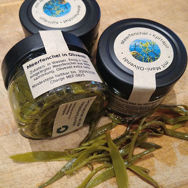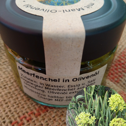Zutaten: eingelegter Meerfenchel (Meerfenchel aus Wildsammlung, Wasser, Essig, Salz), Olivenöl extra nativ