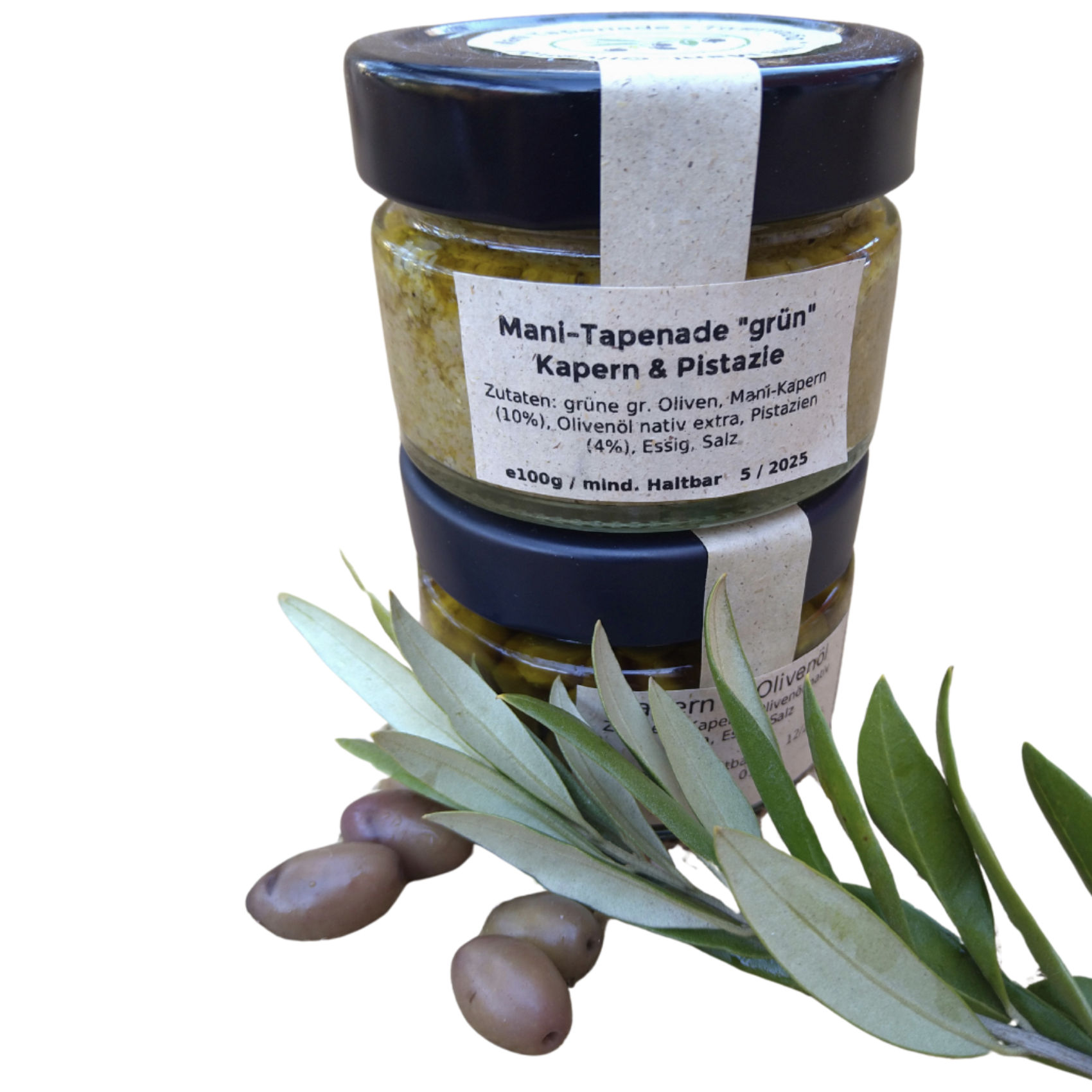 Tapenade aus natürlichen grünen Oliven ist etwas leichter und etwas salziger als ihr Pendant, die schwarze Tapenade, die wir ja bereits in verschiedenen Ausführungen anbieten. Diese grüne Tapenade stellen wir aus mild eingelegten Lakonia-Oliven, Aeropoli-Kapern und natürlich mit unserem Mani-Olivenöl her.