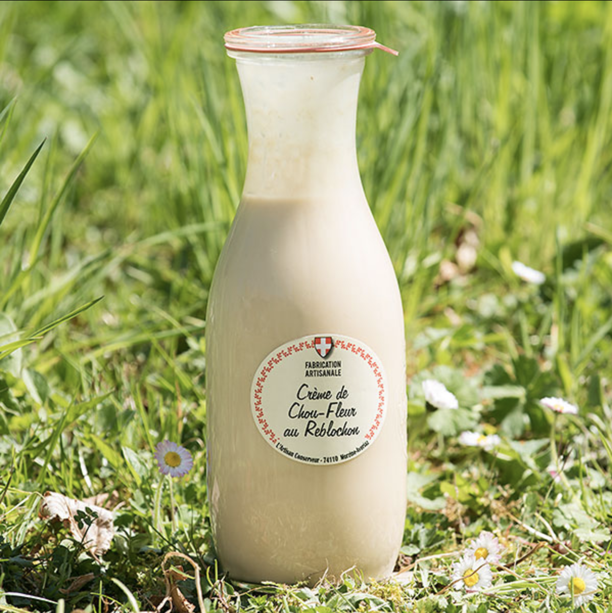 Besonderheit des Produkts: Blumenkohl-Reblochon-Cremesuppe, hergestellt nach traditionellen Rezepten von früher.