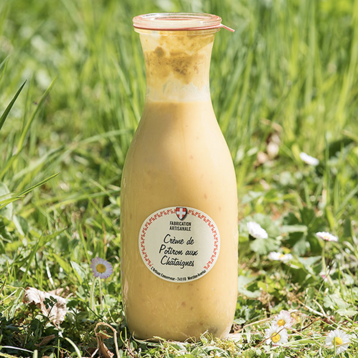 Besonderheit des Produkts: Kürbis-Kastanien-Cremesuppe, hergestellt nach traditionellen Rezepten von früher.